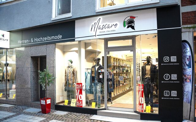 Entdecke bei Mascaro Moda Italiana, Deinem persönlichen Herrenausstatter in Münster, die Exklusivität handgefertigter italienischer Mode. Unsere Styles setzen originelle Akzente und verleihen Dir eine stilsichere Ausstrahlung. Von Business-Outfits bis zur Hochzeitsmode – wir bieten Mode besonderer Art. Unsere italienischen Schuhe runden Ihr Outfit perfekt ab. Bei uns stehst Du im Mittelpunkt. Profitiere von unserer persönlichen Beratung und individuellen Anpassungen. Unser hervorragender Kundenservice steht Dir auch nach dem Kauf zur Verfügung. Besuche uns in der wunderschönen Innenstadt von Münster und lassen Dich von unserer italienischen Modekultur inspirieren.